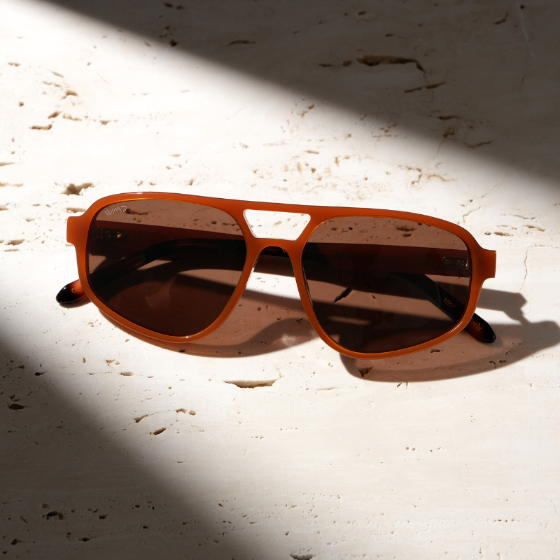 Brooklyn draws from classic aviator design with its double bridge and subtle teardrop rims. An oversized angular acetate frame, tapered arms, and gold detailing elevate the iconic look.