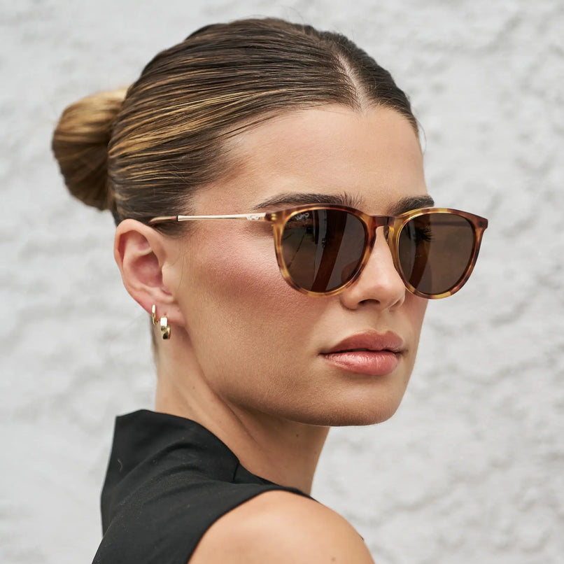 Perfect for outdoor activities and everyday wear, Drew is that that is casual yet trendy go-to pair you’ll constantly be reaching for. This timeless design looks great on a variety of different face shapes and features polarized lenses for maximum sun protection. Contrasting stainless steel temples inject an understated flair that elevates Drew’s retro-chic rims. Choose from a range of colors including blush pink tortoise, soft black, or sapphire tortoise.