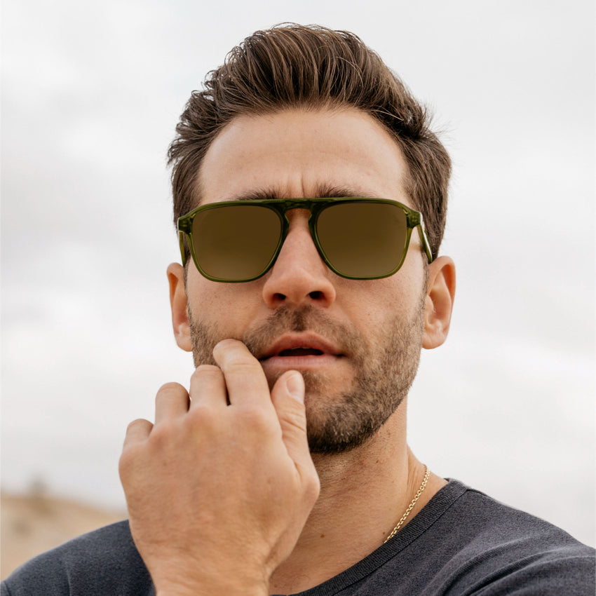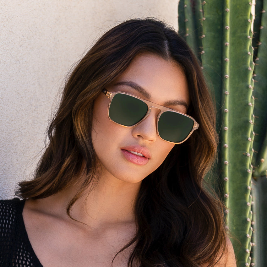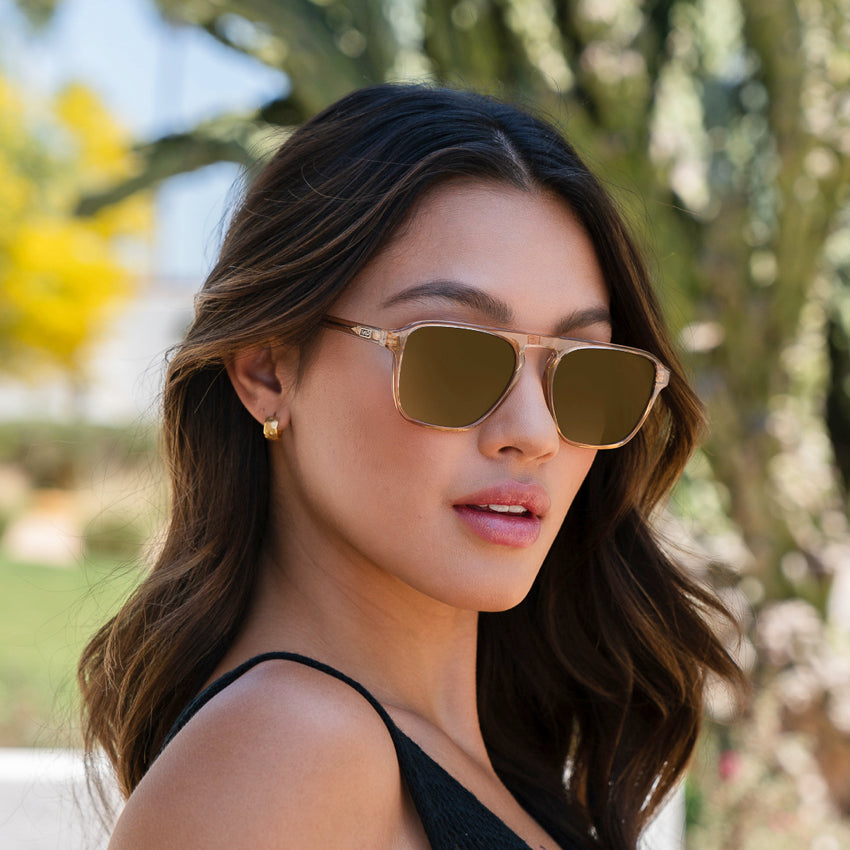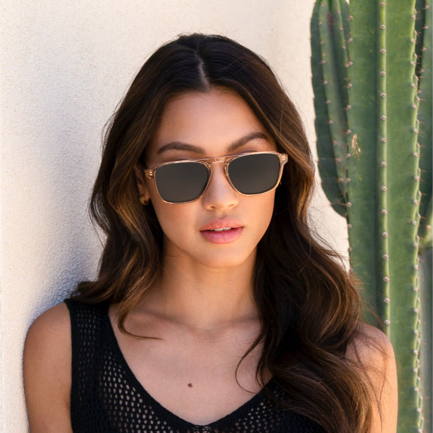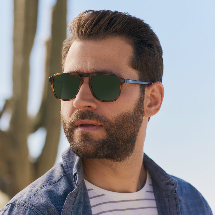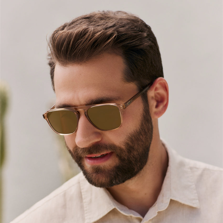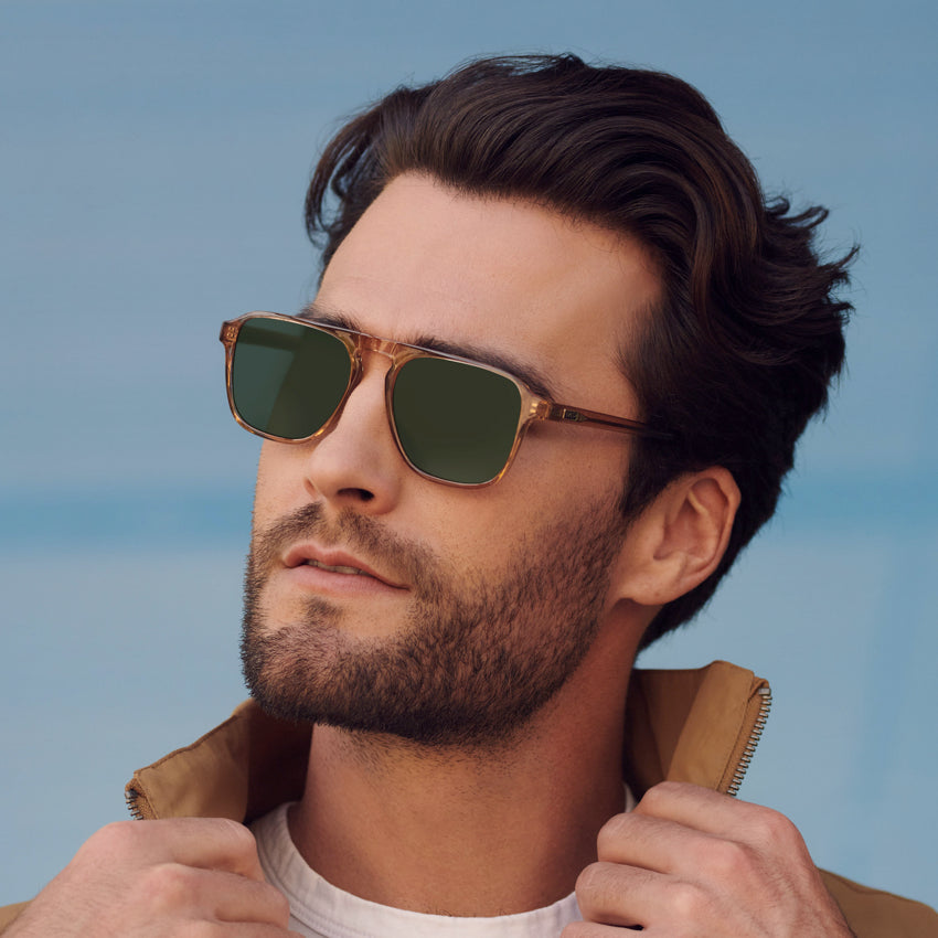 With its refined retro rectangular aviator shape and striking single bridge, Emerson exudes cool confidence. Crafted from lightweight acetate for easygoing wear that’s ideal for an everyday pair of prescription sunglasses, these effortless frames are sure to earn you loads of compliments. Choose from hues like whiskey brown, black beige tortoise, crystal brown, or denim blue for a look that’s truly unique.