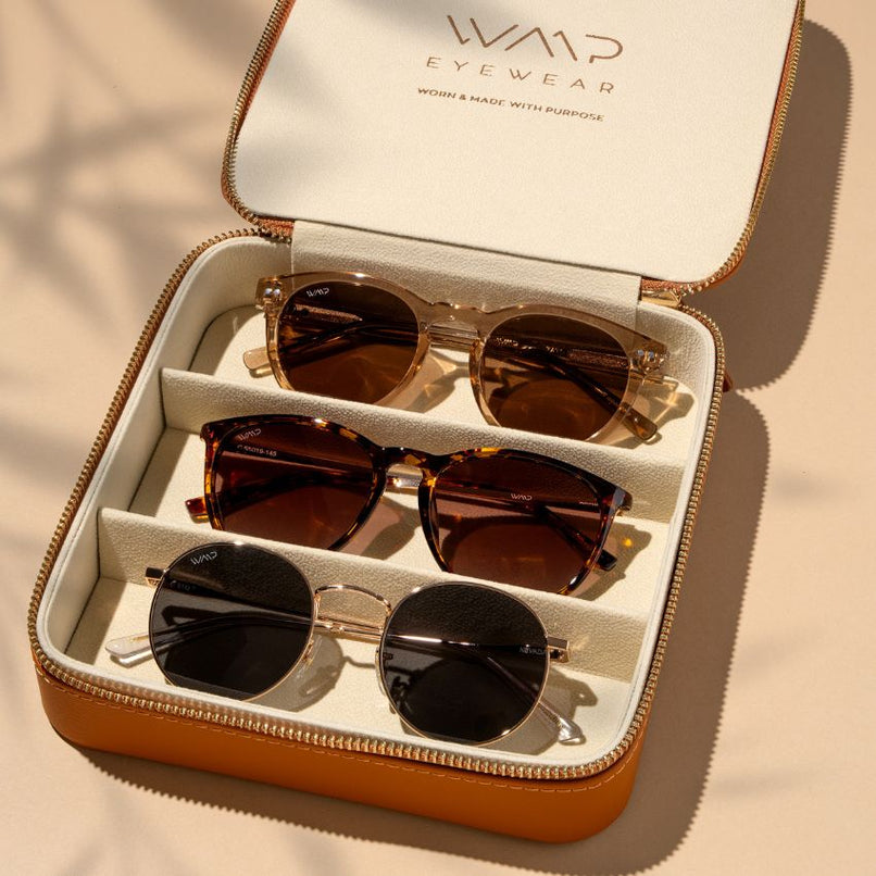 Elevate your eyewear collection with our brand-new sunglass kit, showcasing three hand-selected, top-rated styles packaged in a premium leather travel case. Perfect for gifting too!