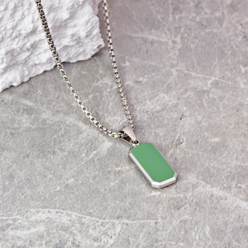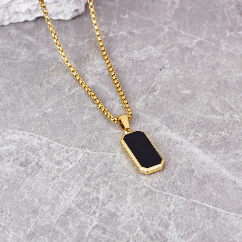 Bold but understated, Pierce effortlessly marries easygoing style with refined charm. Featuring handmade details like an elongated geometric rectangular pendant with a beveled border and sleek porcelain stone inset suspended from a rolo box chain necklace in hypoallergenic 14k gold-plated finish or polished silver stainless steel. A lobster claw clasp and minimal WMP logo tag complete this modern must-have accessory.