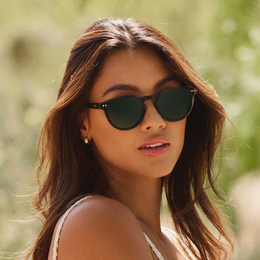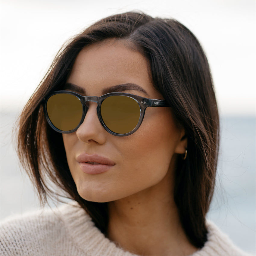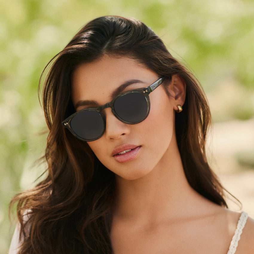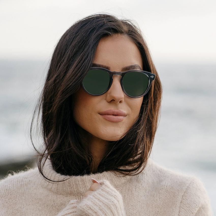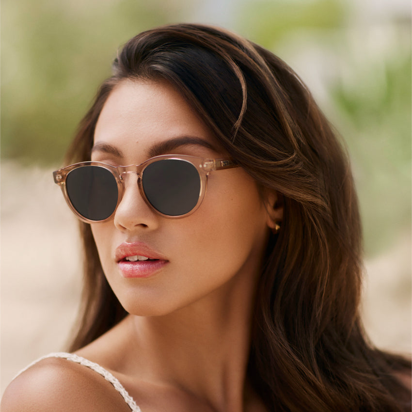 Stylish simplicity and classic coolness combine with retro round-shaped shade, Tate. A notched keyhole bridge and double rivets add elements of interest to this already appealing unisex frame. Available in eye-catching colors like crystal brown and blue along with always on-trend black. Now available with Rx lenses - add your prescription for a custom pair of sunglasses that are sure to become your new go-to.