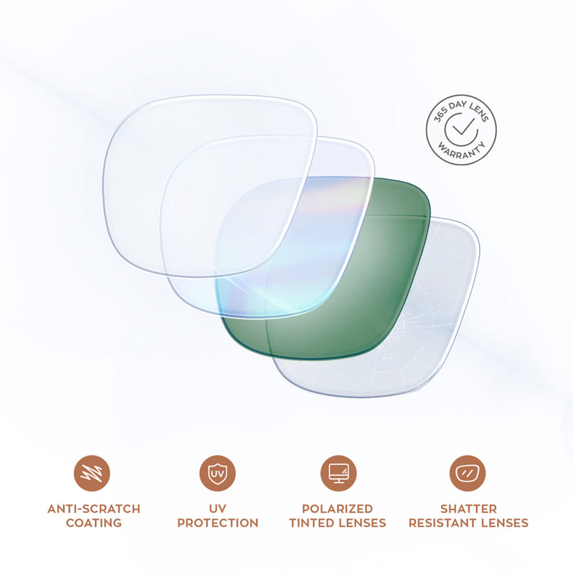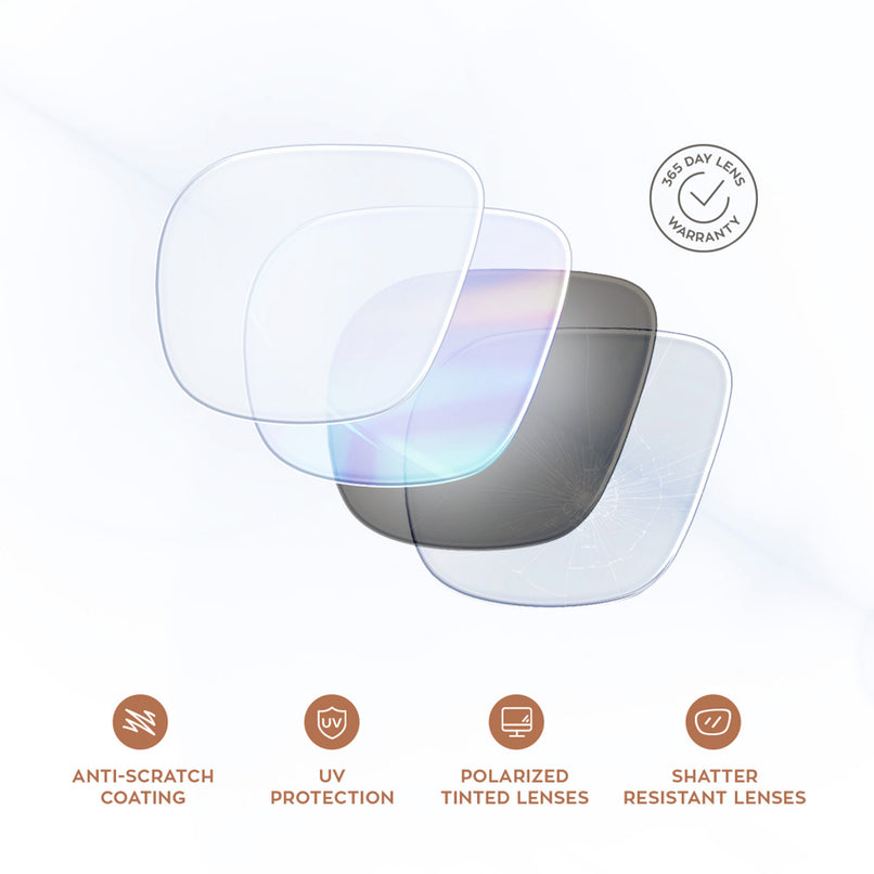 - All lenses come with anti-scratch and UV blocking coatings